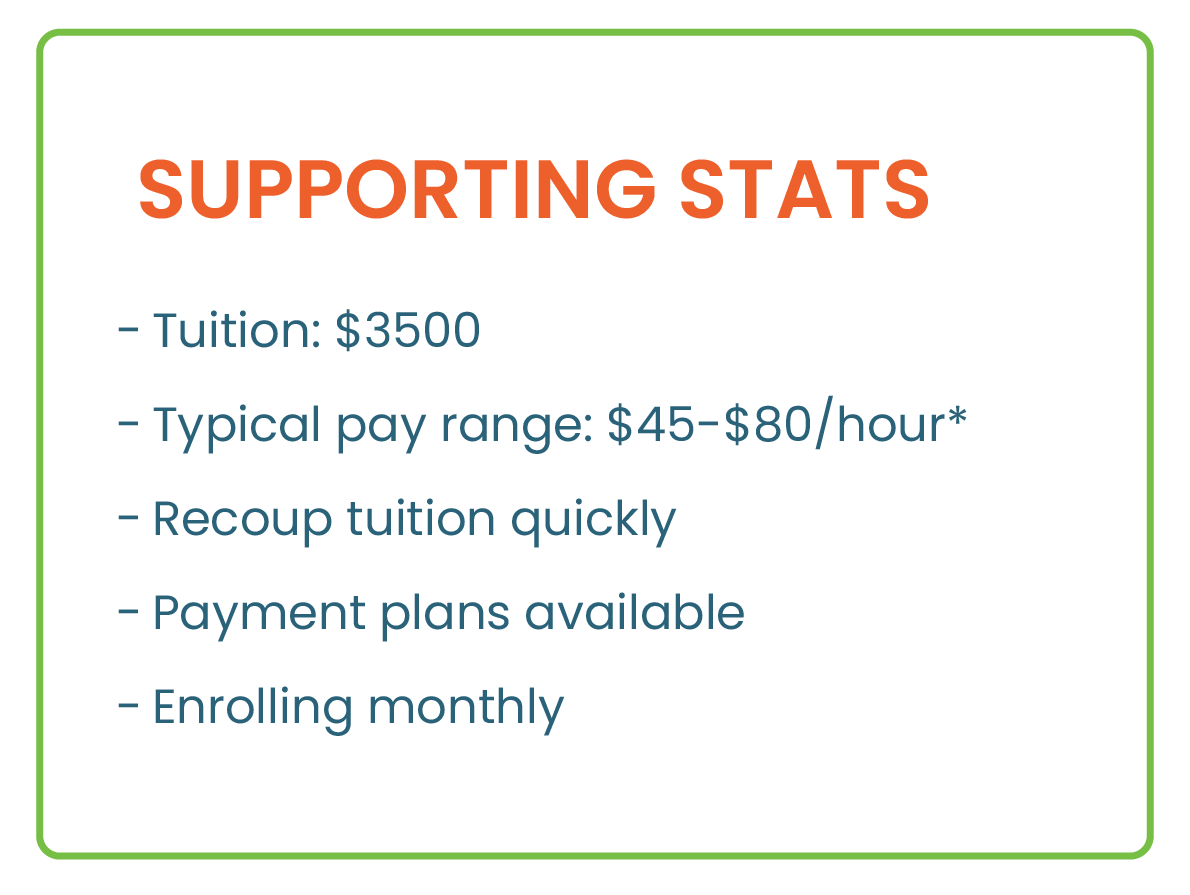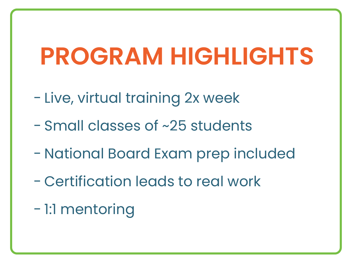 Our program is a $3,500 investment. With live training, small class sizes, and a high-quality learning experience—plus industry-leading NBHWC exam pass rates and strong career opportunities—most students find the value far exceeds the cost.